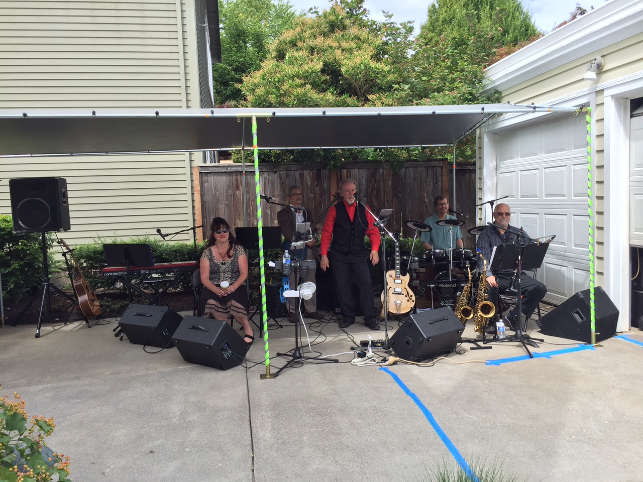 This is where it started this weekend. Out in rural Hillsboro, Oregon for a combined graduation party and summer BBQ. Crowd wouldn’t let us leave when we were done, so we had a three song impromptu set that started with Brown Eyed Girl, which lead into LaBamba which we mashed up with Twist and Shout. Kudos to our drummer and singer, Dave Panzer, for handling the main vocals. The “Graduate” turned out to be a great drummer. He showed off his talent and then jammed with us on Stevie Wonder’s “Superstition.” It was awesome.